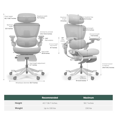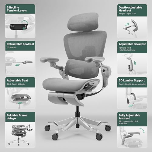 Hinomi H2 Pro Ergonomic Office Chair — Full Mesh, 3D Lumbar, Flip-Up Armrests